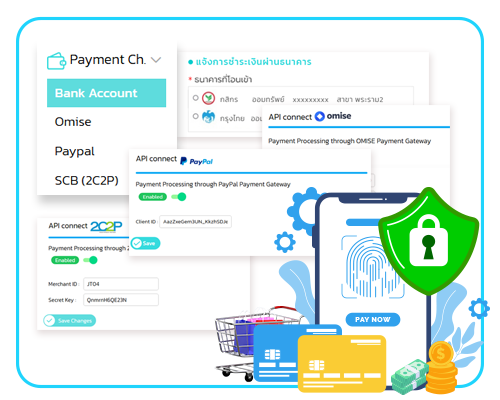 รองรับการชำระเงินออนไลน์ด้วยบัตรเครดิตและช่องทางต่าง ๆ ผ่านผู้ให้บริการที่น่าเชื่อถือ (Payment Gateway)